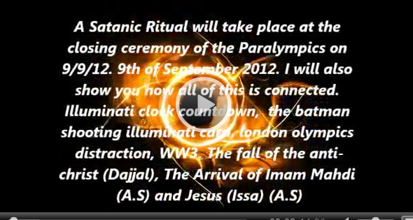 Heute ist ‚mal wieder so ein Tag, an dem Sensationelles passieren soll. Das Ganze erinnert verdächtig an letztes Jahr, da hatten irgendwelche Idioten zum Eröffnungsspiel der Frauenfußball-WM einen verheerender Terroranschlag für Berlin vorausgesagt … … der natürlich ausblieb. Jetzt soll es heute, zum Abschluss der Paralympics in London, so weit sein. Eine ganze Reihe von Videos will das auf wie immer völlig unsinnige Weise „belegen“. Schauen wir mal in eins rein: