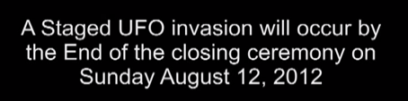 In einem anderen Video sind es nicht die Illuminaten, sondern UFOs, die zur Schlußfeier der Paralympics einschweben sollen. Na ja, eigentlich hätten sie ja schon früher kommen sollen, zur Schlußfeier der Olympischen Spiele: