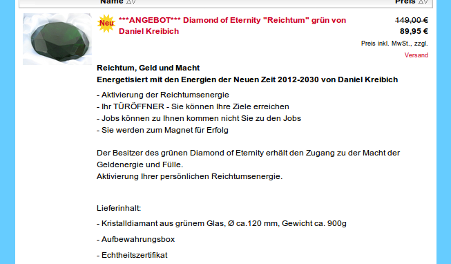 Klar, die Abzocke mit solchem Kram ist eine absolute Sauerei. Eigentlich unvorstellbar, dass jemand ernsthaft glaubt, dieser Clown würde tatsächlich diese Steine aus Bermuda holen. Und er hat ja noch mehr auf Lager, zum Beispiel das: